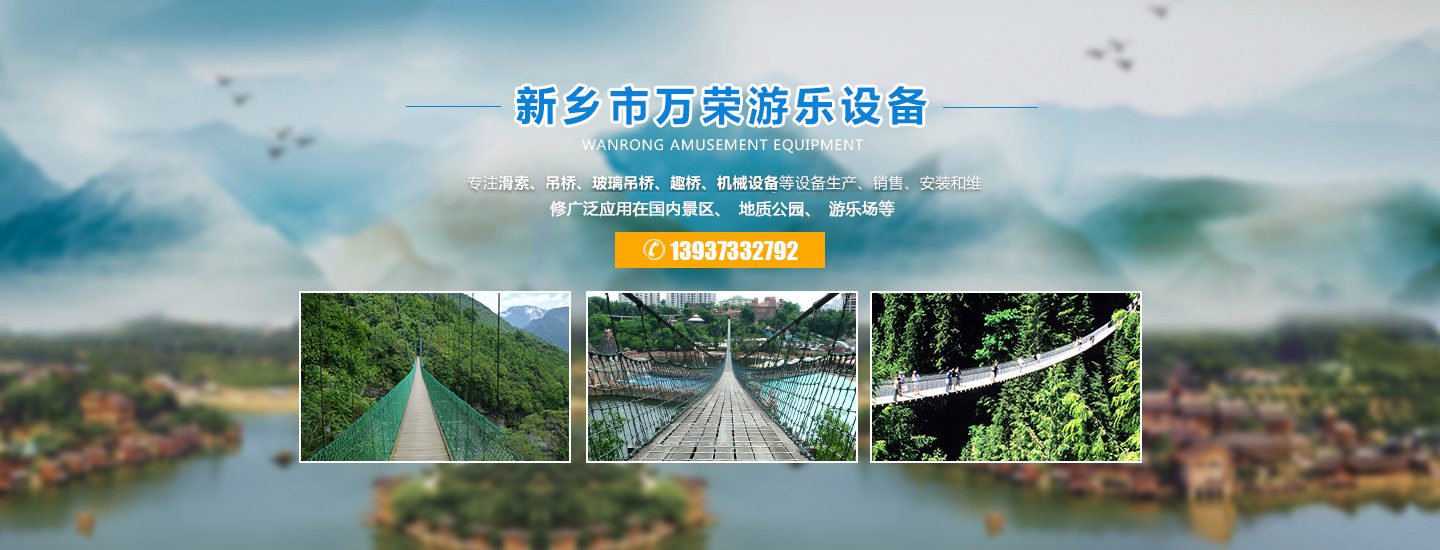 歡迎進(jìn)入新鄉(xiāng)市萬榮機(jī)械有限公司官網(wǎng)!關(guān)鍵詞:玻璃水滑廠家,吊橋廠家, 景區(qū)吊橋價格, 滑索廠家, 游樂吊橋廠家, 玻璃吊橋, 防腐木吊橋廠商 ,景區(qū)吊橋, 滑索設(shè)備, 吊橋生產(chǎn)廠家, 吊橋多少錢, 木板吊橋, 吊橋施工廠家